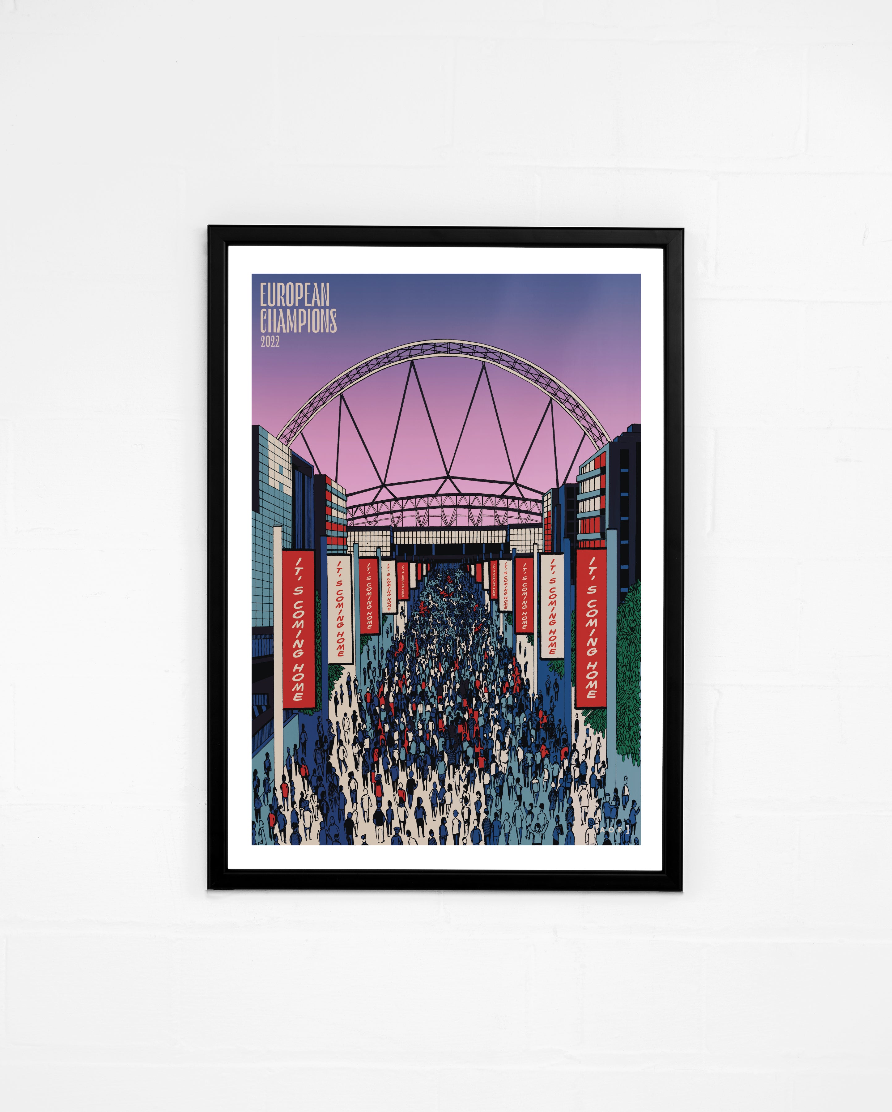 - Framed versions use a black wood frame made in the UK.