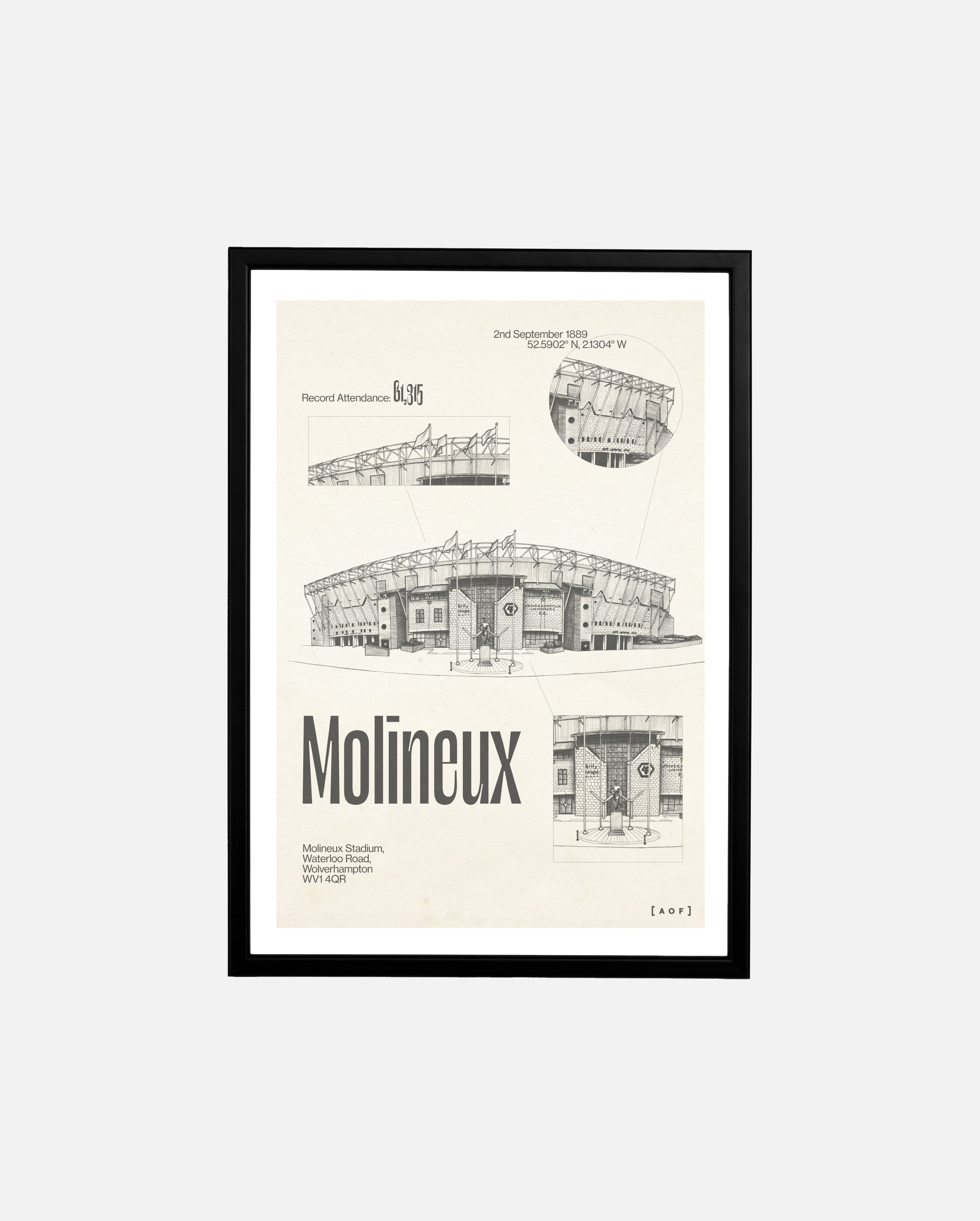 - Framed versions use a black wood frame made in the UK.