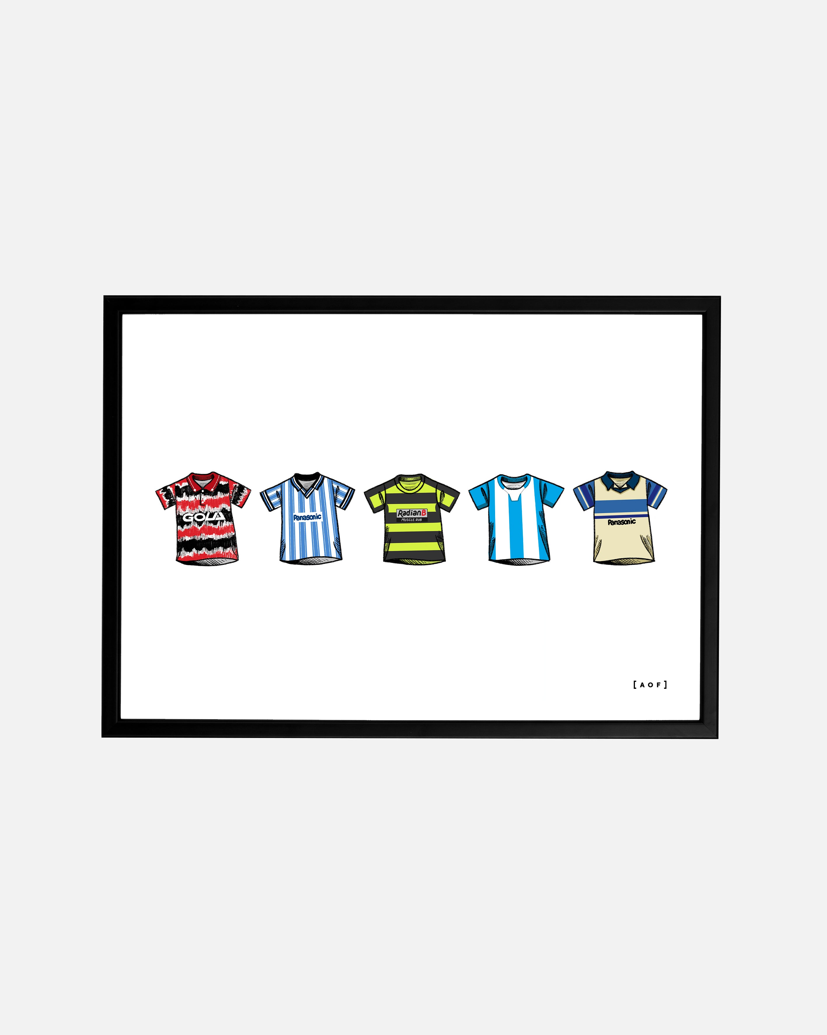 - Design: A collection of classic football shirts.
