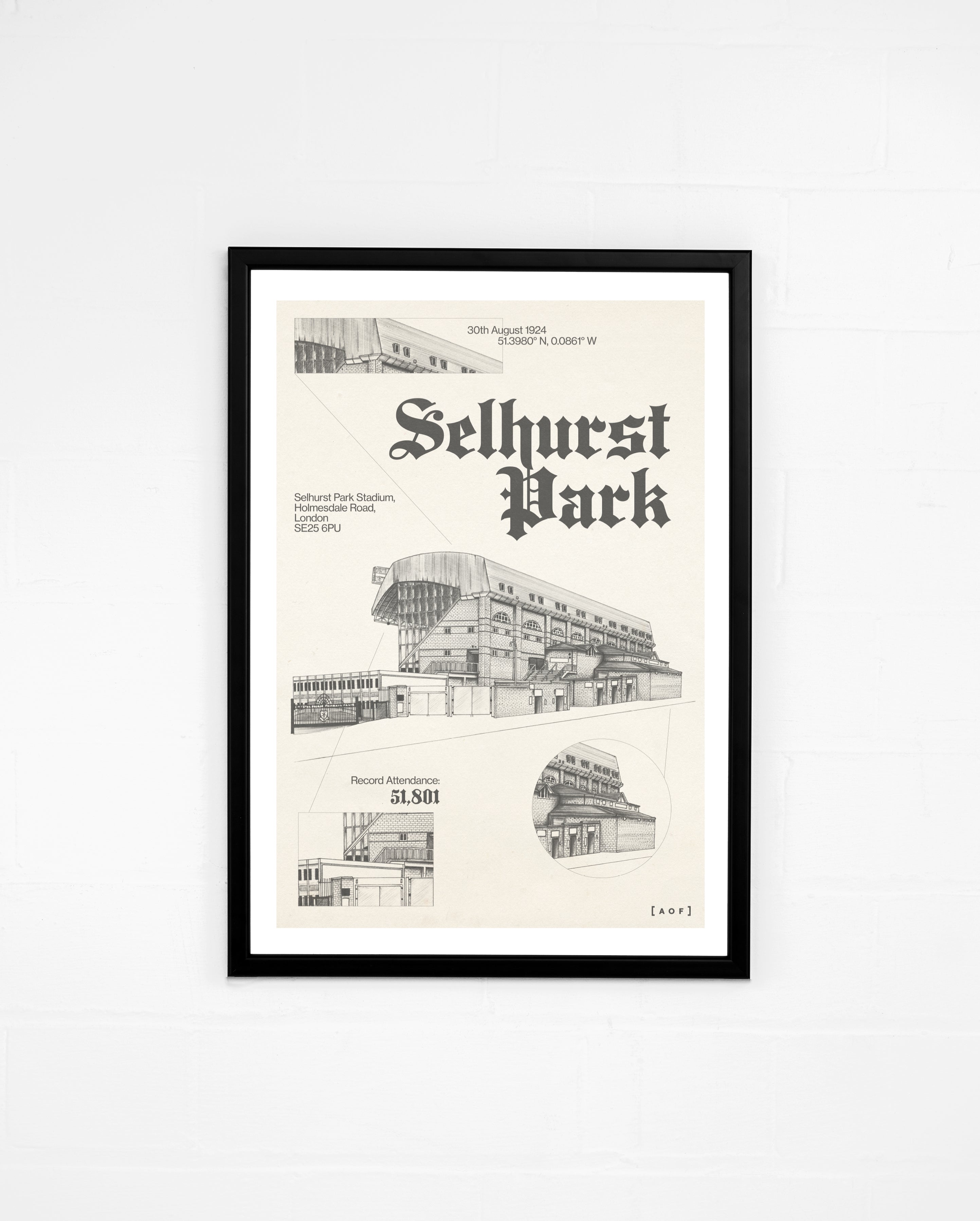 - Framed versions use a black wood frame made in the UK.